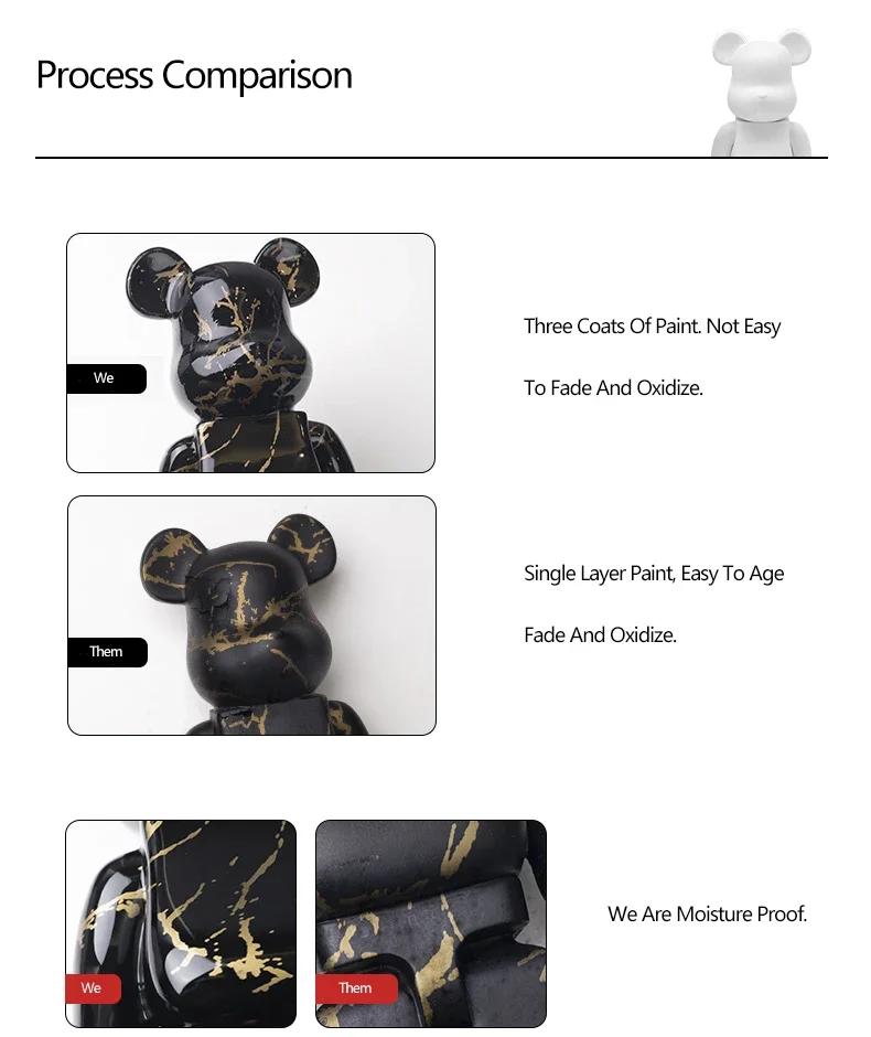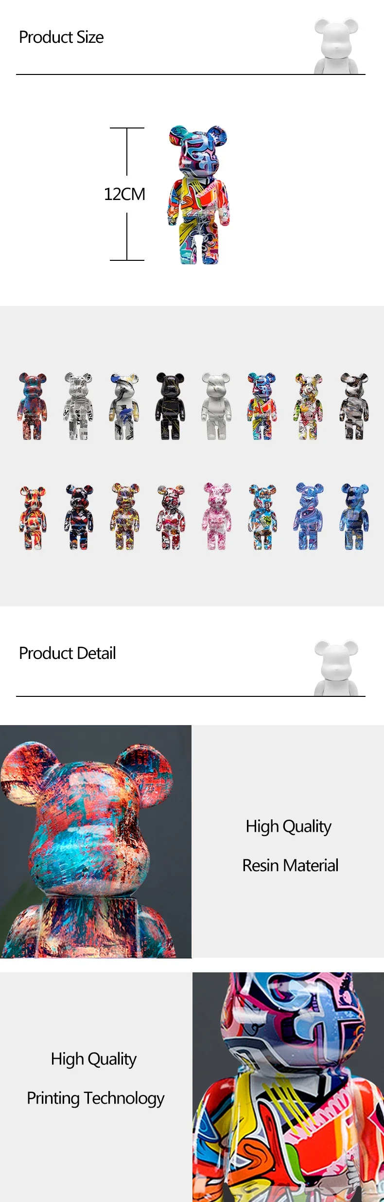 The Graffiti Violent Bear Statue is available in a variety of colors, allowing you to choose the perfect shade that complements your interior design. Whether you prefer bold hues or subtle tones, there are six stunning options to fit your style.