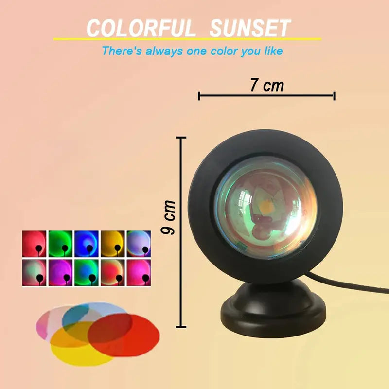 Enhance your living space and make every moment special with the USB Sunset Rainbow Projector. Perfect for bedroom decor, home parties, or simply creating a cozy atmosphere for movie nights.